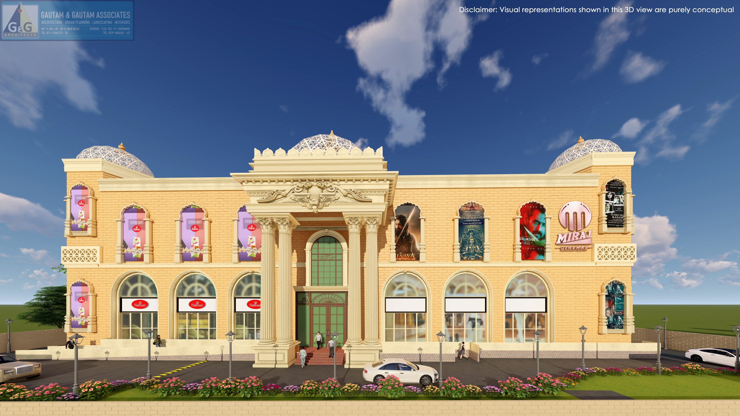 Intricate jali work and stone-textured finishes introduce a regional flavor, anchoring the structure within its cultural context. A restrained yet rich material palette — including natural hues, traditional moldings, and soft lighting — highlights the detailing without overwhelming the visitor’s experience.