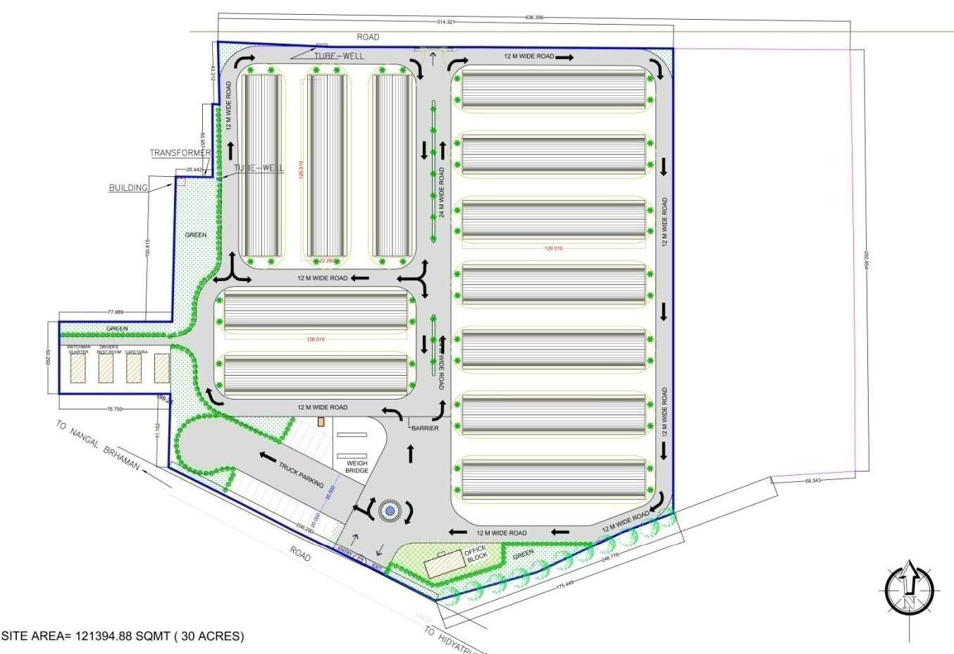 The FCI Warehouse in Haryana is a thoughtfully designed facility that prioritizes both functionality and sustainability. From an architectural perspective, the warehouse is designed to efficiently store bulk food grains and other commodities, with a focus on durability and environmental protection. The structure features large, open storage areas, built with robust materials to handle the weight and volume of goods, while ensuring proper ventilation to maintain ideal storage conditions.