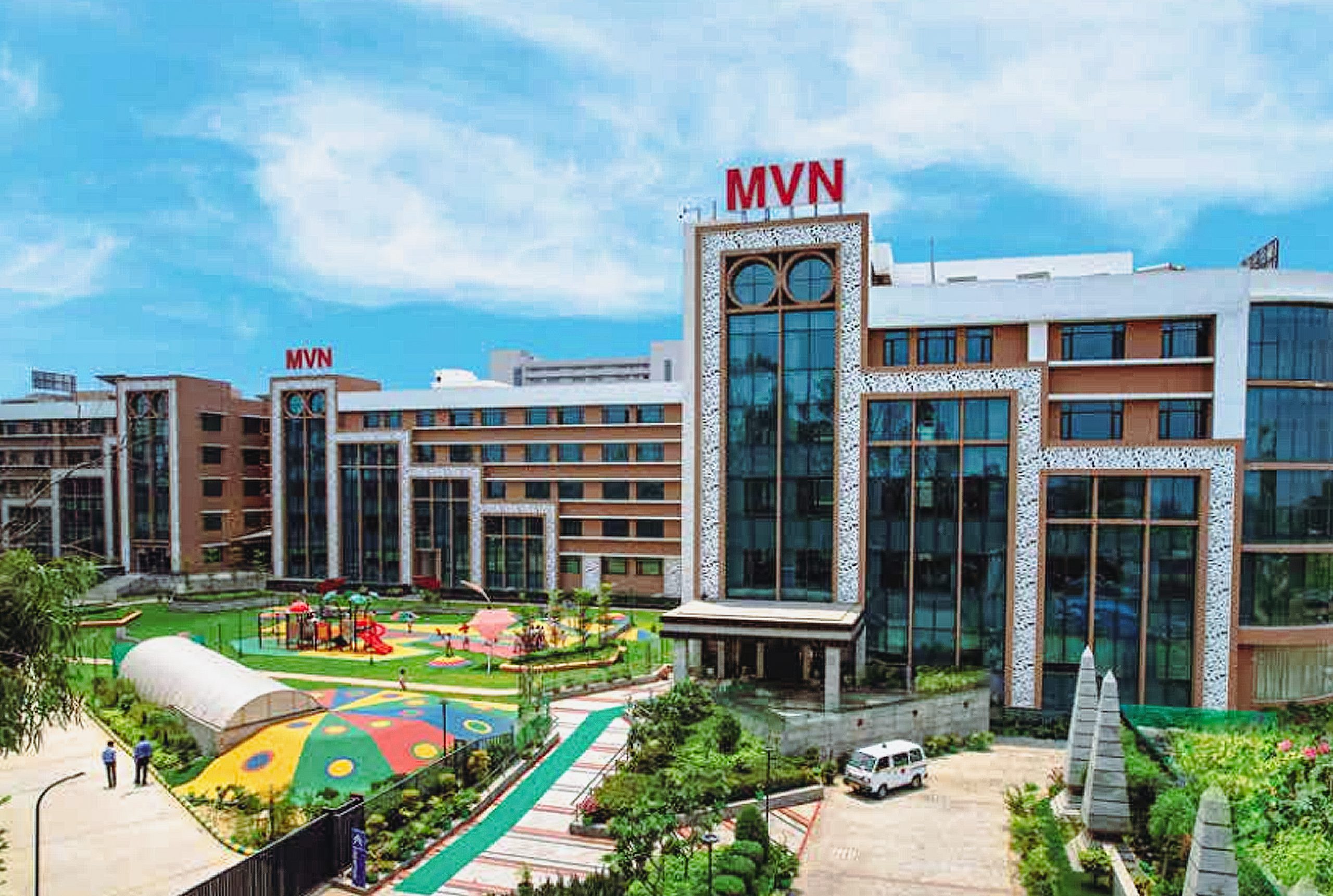 In terms of amenities, MVN School is equipped with state-of-the-art facilities to enhance the learning experience. The school boasts well-equipped classrooms with smart boards and modern teaching aids, alongside specialized science and computer laboratories for practical learning. A well-stocked library offers a vast collection of books, journals, and digital resources. For sports enthusiasts, there are extensive sports facilities, including basketball, football, and volleyball courts, as well as areas for indoor games. Additionally, the school has an auditorium for events, cultural programs, and assemblies, a cafeteria serving nutritious meals, and a medical room for healthcare services. To ensure convenience for students, transportation facilities are also provided for those residing in nearby areas. These amenities, combined with the school’s thoughtful architectural design, create a well-rounded environment that supports both academic and extracurricular growth.