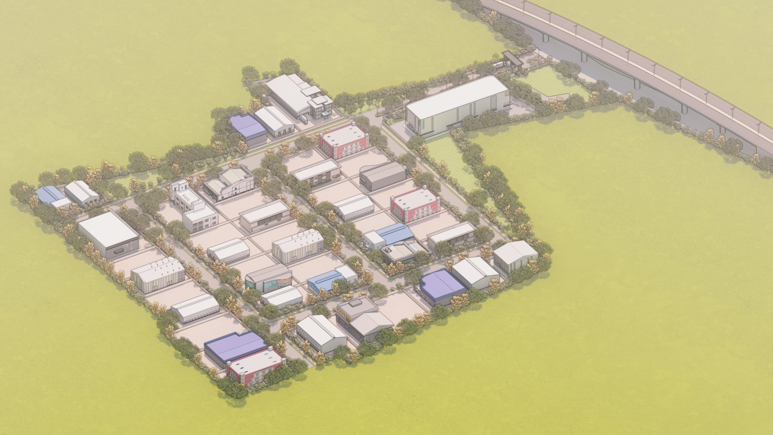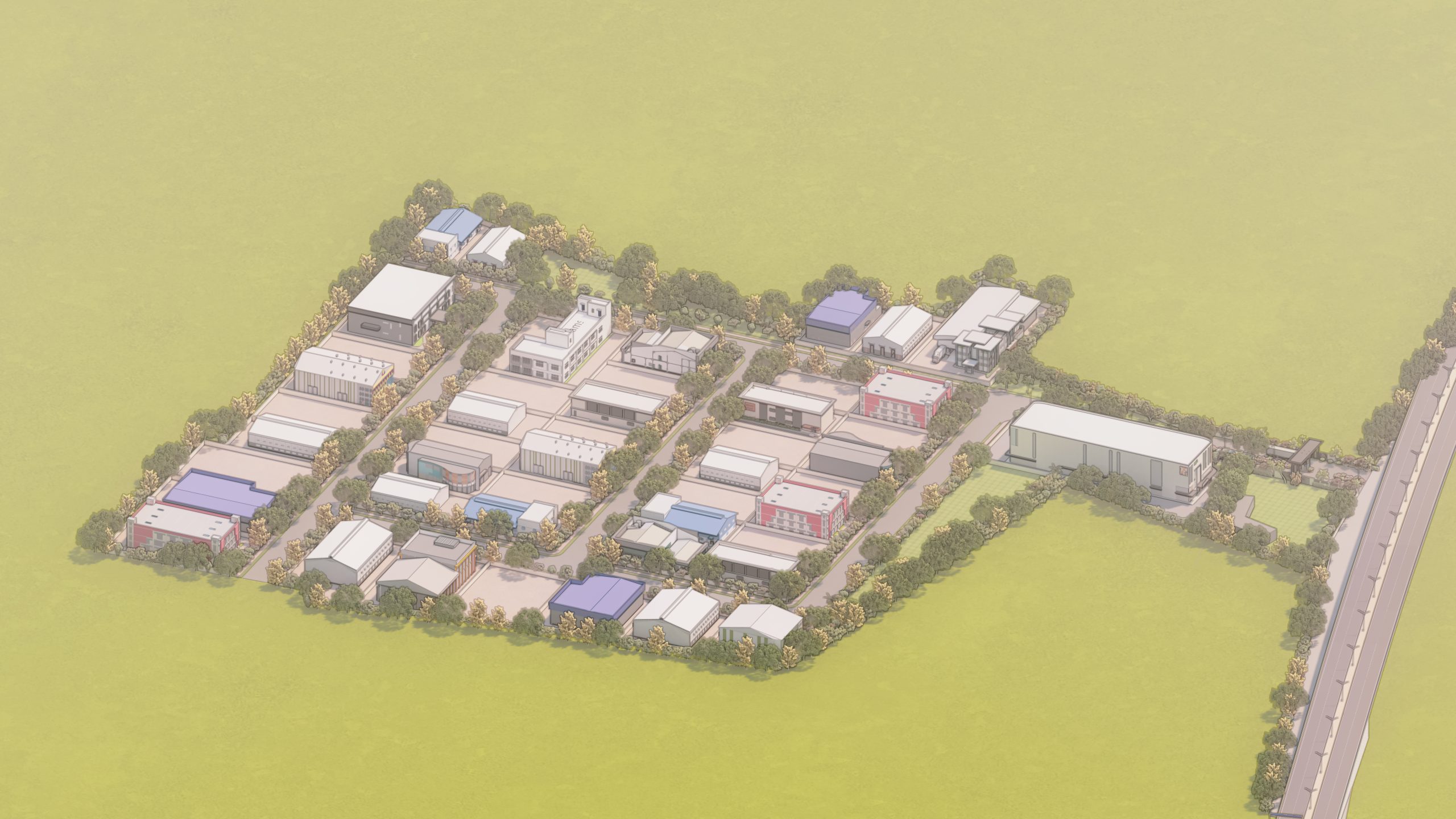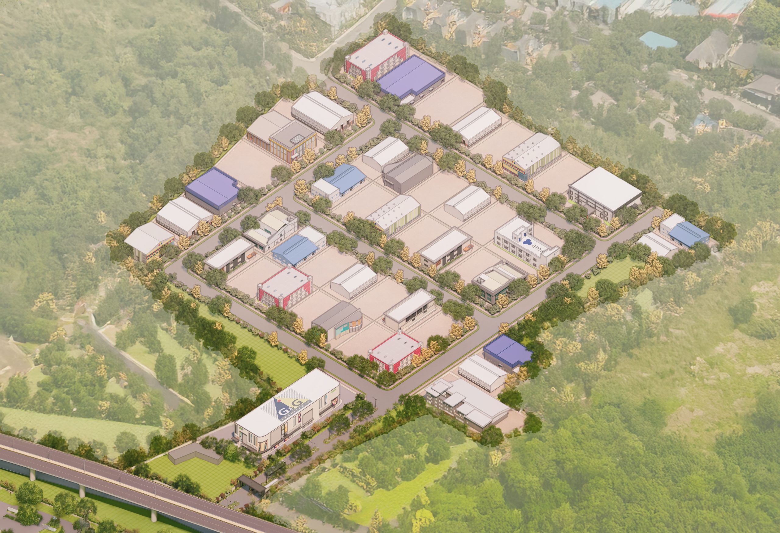Swastik Industrial Plotting @ Gadpuri is a strategically planned industrial township located along Mathura Road in the Palwal district, offering well-defined plots ranging from 800 to 2,800 gaj to accommodate a range of industrial and warehousing needs. The design showcases a fututristic -thinking architectural approach tailored for efficient industrial operations, combining functionality with modern industrial aesthetics. The layout emphasizes modular, flexible plot configurations ideal for prefabricated steel structures, allowing for scalable warehouses, production units, and integrated office mezzanines. Each plot is designed to accommodate wide-span sheds with generous clear heights and column-free spaces, optimizing internal workflow and equipment mobility. The architectural design integrates durable materials such as PEB steel frames, insulated wall panels, and ventilated roof systems to ensure thermal efficiency and structural resilience. Thoughtfully planned service zones, including dock-level loading bays, internal circulation roads, and designated utility corridors, contribute to seamless operations. Landscaping buffers and built-in provisions for natural lighting and ventilation further enhance the environmental performance, creating a high-functioning, adaptable industrial environment ready for contemporary manufacturing and logistics needs.